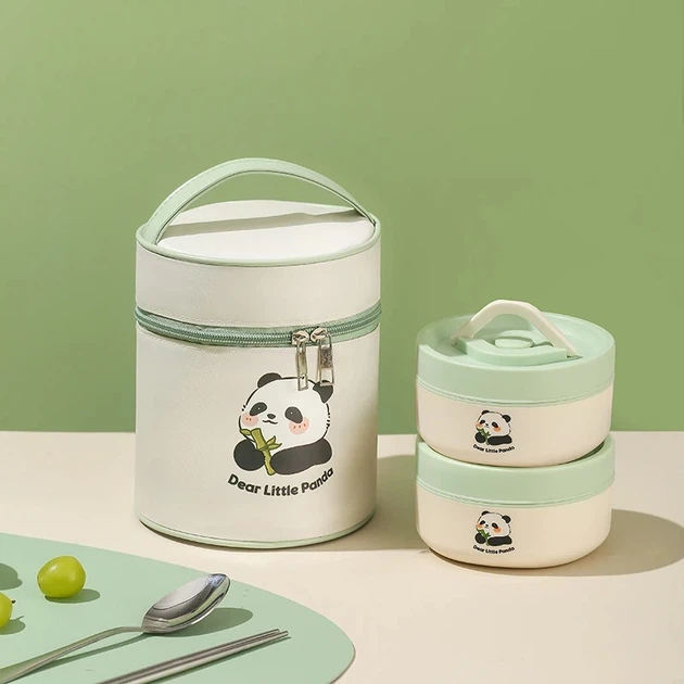 Набір з 2 овальних ланч-боксів 420 мл і 620 мл з термосумкою Panda, герметичні контейнери з нержавіючої сталі 304