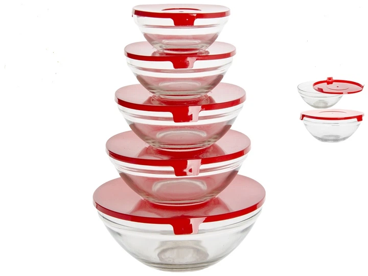Набір судочків із меламінового посуду 5 шт + набір із 6 шт силіконових універсальних кришок (D-2019091390)