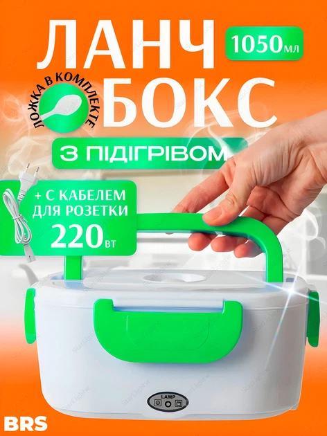 Ланч бокс із підігрівом контейнер електричний для їжі від мережі + кабель для розетки BRS Green-White