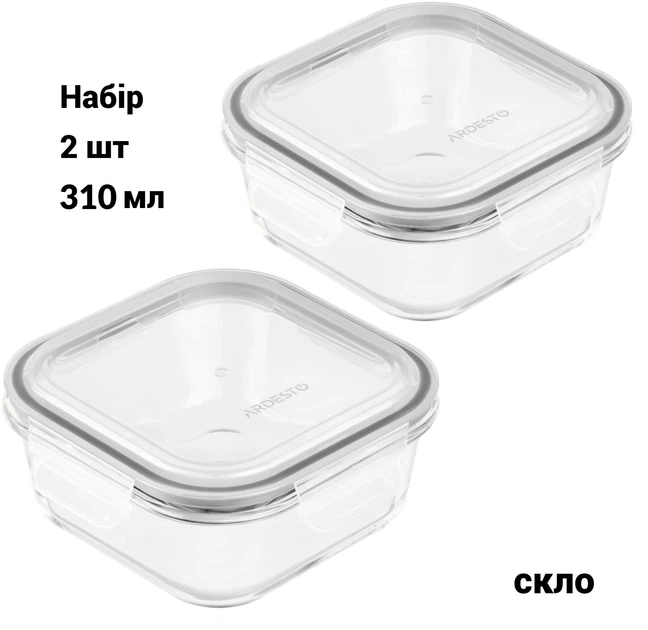Набір контейнерів для зберігання скляних 2 шт Ardesto Gemini термостійкі квадрат 310 мл AR1230BSQ