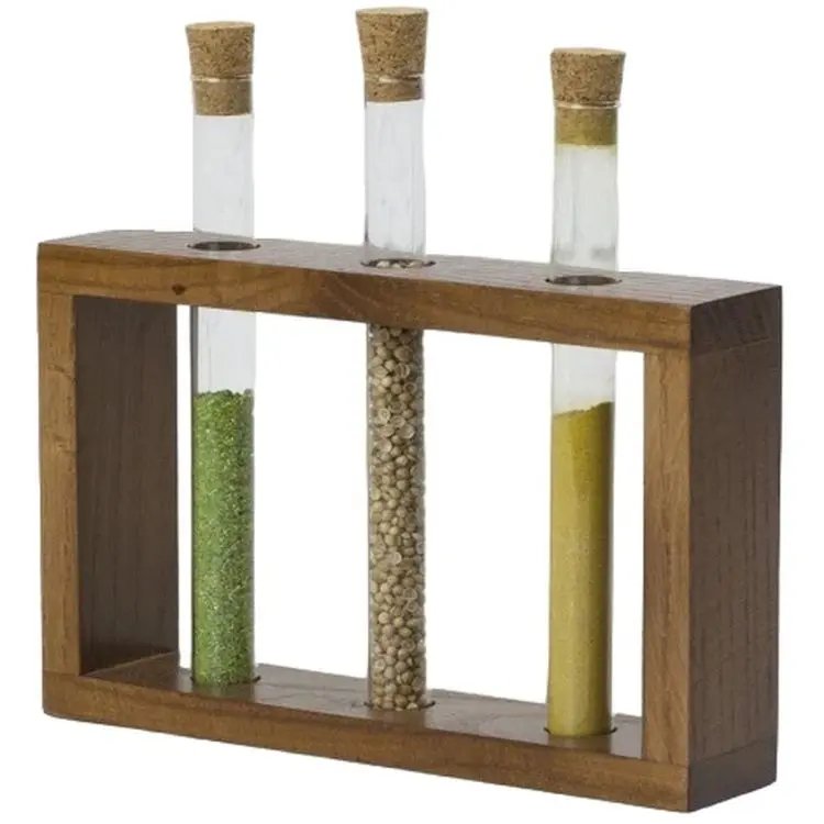 Набір для спецій Склоприлад Пробірки в дерев'яній підставці, 3 шт., коричневий (300545)