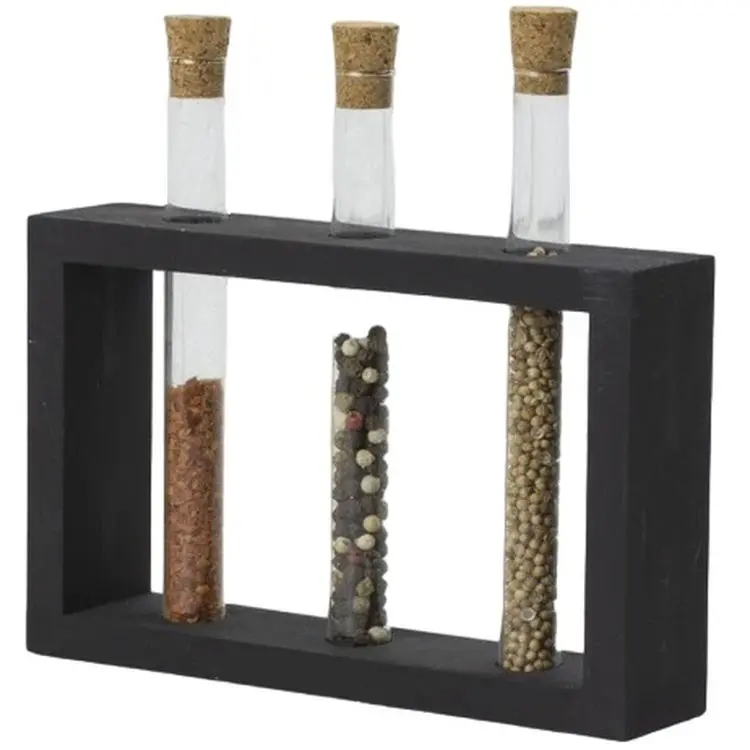 Набір для спецій Склоприлад Пробірки в дерев'яній підставці, 3 шт., чорний (300547)