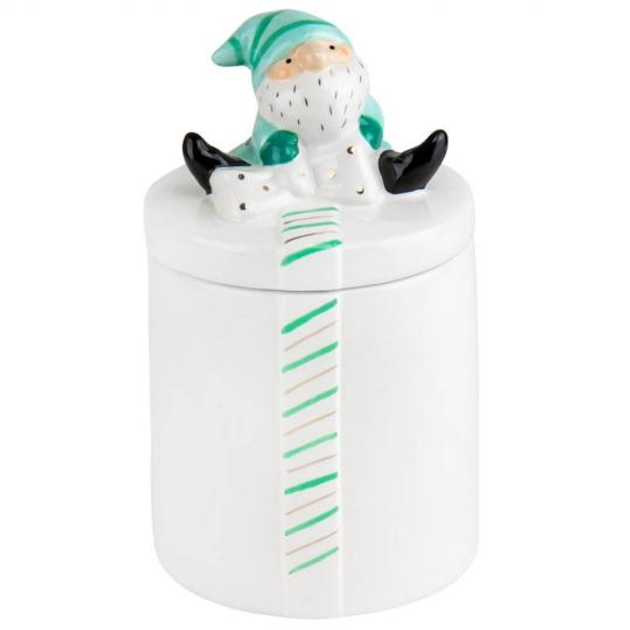 Цукорниця з кришкою Подарунок від Санти керамічна 22 см декоративна новорічна біла з декором (33-81-4000-045)