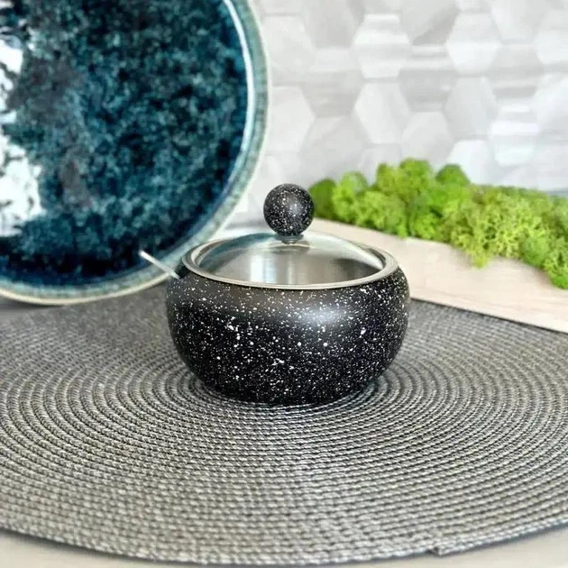 Цукорниця з ложкою для чаю 450 гр чорна EB-18031