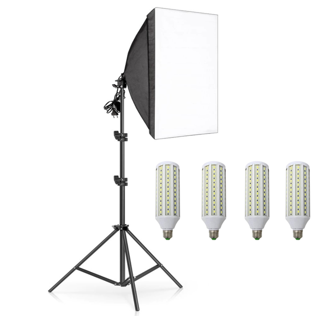 Набір студійного світла Prolight 50х70 см софтбокс на 4 лампи + Стійка + LED лампи 60 Вт.