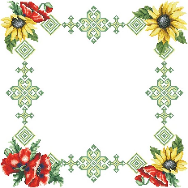 Набір для вишивки нитками Барвиста Вишиванка скатертини Маки і Соняшники 75х75 (ТР033пБ5252i)
