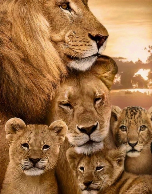 Алмазна мозаїка на підрамнику Сімейство левів, 5570 см, повна викладка, квадратні камені, підрамнику