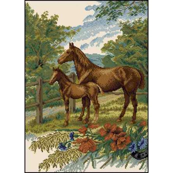 Набір для вишивання хрестиком Розмір: 38*29 см Індіанські коні