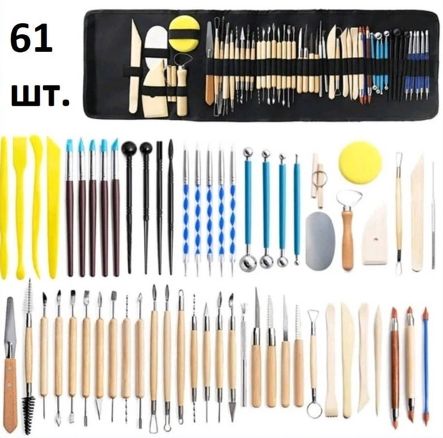 Великий професійний набір різних інструментів з фартухом для моделювання, ліплення та формування виробір із глини, пластилін