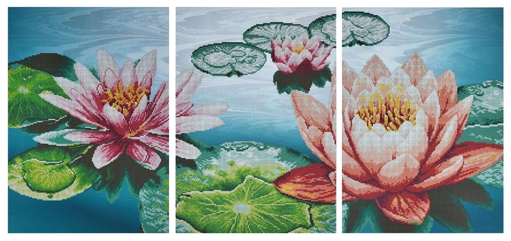 Набір для вишивки бісером модульної картини ARHIBIS Триптих Лотоси, 90*42 см (А3-К-329)