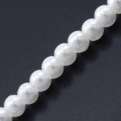 Перли Намистини Скло 4мм, Глянцеві, Круглі, Білий, 4мм, Отвір 1мм, близько 185шт/75см/нитка