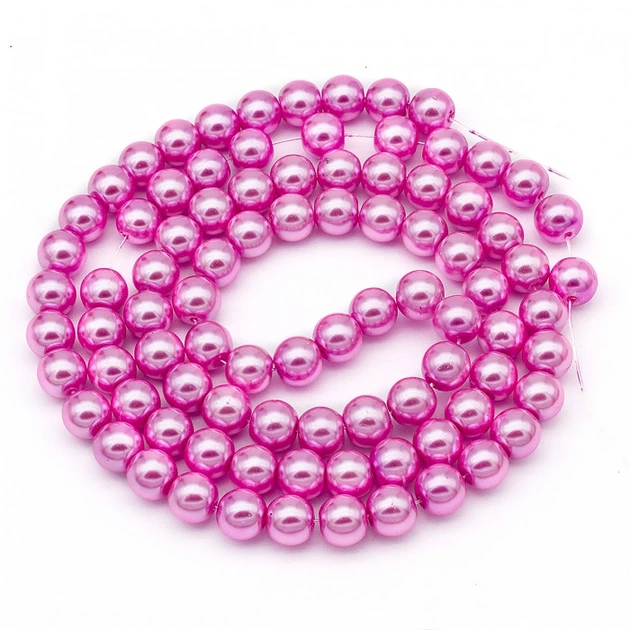 Перли Намистини Скло 10мм, Глянцеві, Круглі, Яскраво-рожевий, 10мм, Отвір 1мм, близько 85шт/85см/нитка