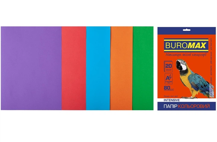Набір кольорового паперу А4, 20 арк. 80 m/g.( 5 кол. по 4 шт.) BM.2721320-99 Buromax