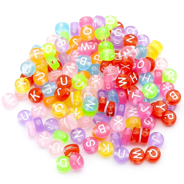 Намистини пластикові алфавіт ABC у формі таблетки білі літери 7х4 мм 25 г +-190 шт Різнокольоровий (БП0704т52)