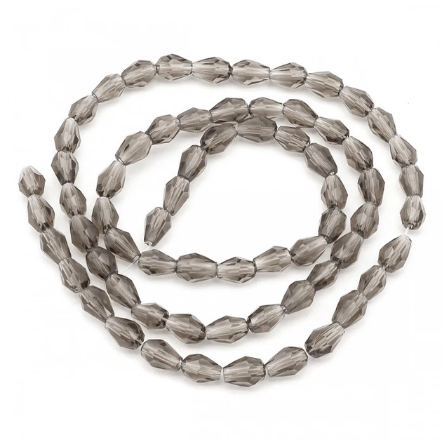 Намистини Скло Крапля, Прозорі, Грановані, Димчастий Сірий, 6х4мм, Отвір 1мм, близько 72шт/43см/нитка