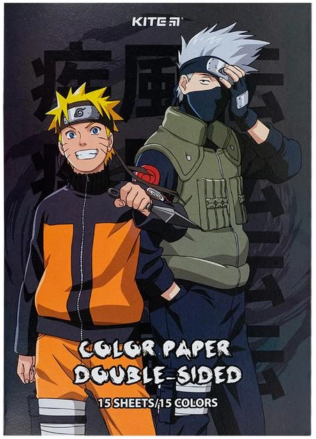 Двосторонній кольоровий папір Kite Naruto А4 15 аркушів 15 кольорів (NR24-250)