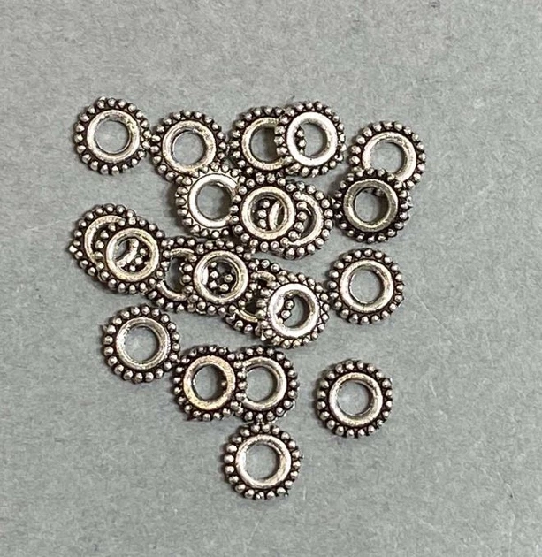 Фурнітура намистина вставка колір металу срібло, діаметр 5, 5х1мм+- отвір, діаметр 2, 5мм+- фасування 20 грам (~195шт. ), id
