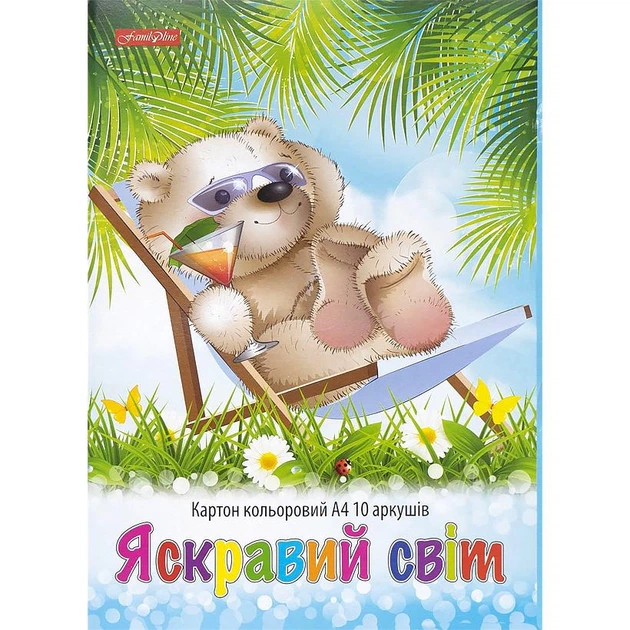 Кольоровий картон А4 "ЯСКРАВИЙ СВІТ" односторонній 10 аркушів