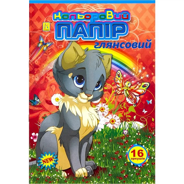 Кольоровий папір А4 глянсовий, 16 аркушів