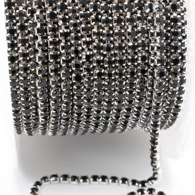 Стразовий ланцюг SS6 (2 мм) 1 м Jet silver (ЦС0602с06)