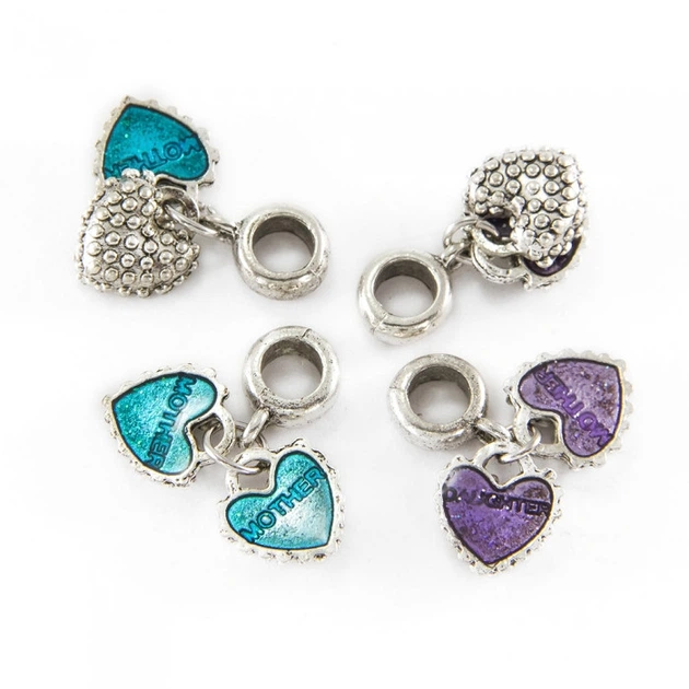 Шарми Євробусини з Кулоном, Серце, Метал з Емаллю, Мікс, 26мм, Отвір 5мм, 2 шт