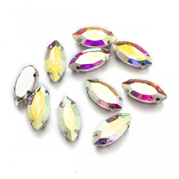 Пришивні Стрази Скло, Основа Латунь, Кінське око, Білий, 12х6х4.5мм, Отвір 0.8-1мм, 10 шт