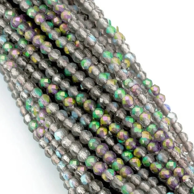 Намистини Шпінель ограновування кругле 2 мм +-180 шт. нитка 35 см Сіро-зелений АВ (БШ0002к55)