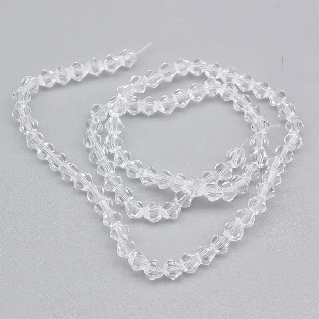 Намистини Австрійський Кришталь Клас АА, Імітація, Біконус, Безбарвний, 4х4мм, 80шт/29см/нитка
