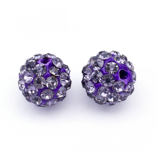 Намистини Шамбала зі Стразами, Клас А, з Полімерної Глини, Круглі, Фіолетовий, 8мм, Отвір 1.5мм, 2 шт