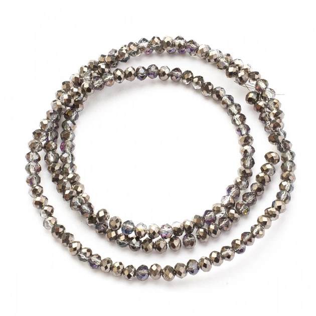 Намистини Гальваніка Скло, Грановані, Рондель, Чорний, 3х2мм, Отвір 1мм, близько 155шт/35см/нитка