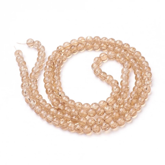 Намистини Кракле "Бите Скло" Круглі, Коричневий блідий, 6мм, Отвір 1мм, близько 127шт/76см/нитка