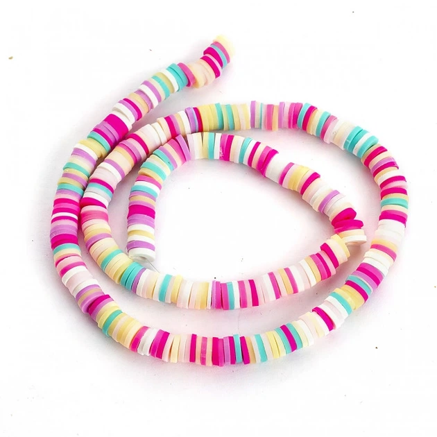 Намистини з Полімерної Глини, Ручна Робота, Круглі Плоскі, Яскраво-рожевий, 6x0.5-1мм, 290шт/38см/нитка