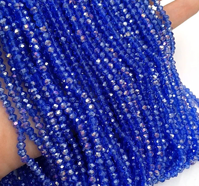 Намистини кришталеві Рондель 4х3 мм сині прозорі з АБ (уп.125-135 шт)