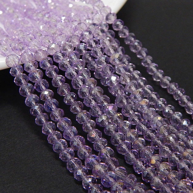 Намистини скляні 2,4х3 мм прозорі бузкові (уп.165-175 шт)