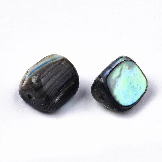 Намистини Морський Перламутр Абалон/Пауа, Самородок, 10.5x7.5-8.5x4-7.5мм, Отвір 1мм, 2 шт