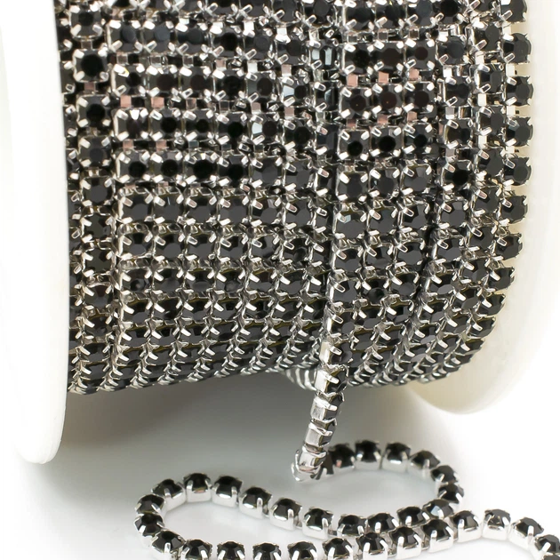 Стразовий ланцюг SS8 (2.5 мм) 1 м Jet silver (ЦС0802с06)