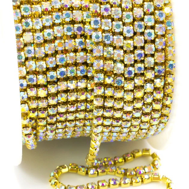 Стразовий ланцюг SS6 (2 мм) 1 м Crystal AB gold (ЦС0602з50)