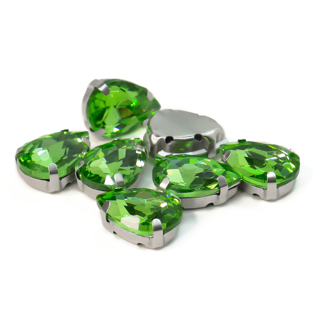 Стрази в оправі пришивні Крапля, розмір 6х10мм, колір Салатовий світлий, 10шт. (СЦ0610я35)