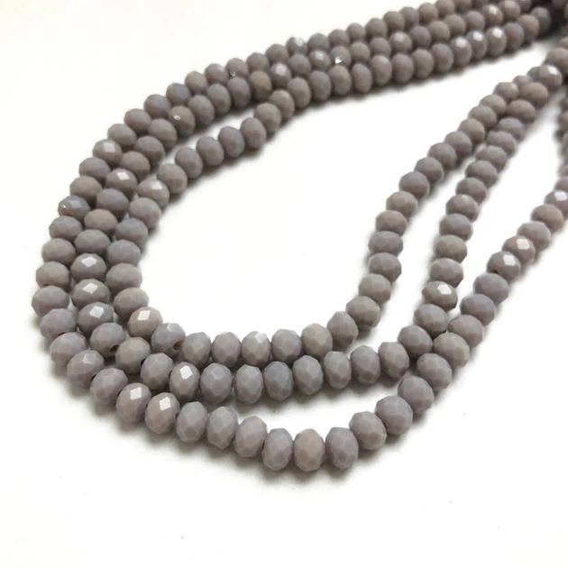 Намистини Чеський Кришталь на волосіні асорті світло-сіре з напиленням гранований рондель, діаметр 6х4, 5мм + -, довжина 38-