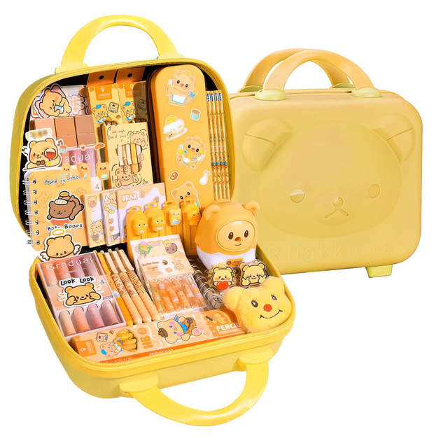 Великий набір канцелярії в чемодані «Ведмедик» 55 в 1 Жовтий