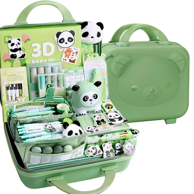 Великий набір канцелярії в чемодані «Панда» 55 в 1 Зелений