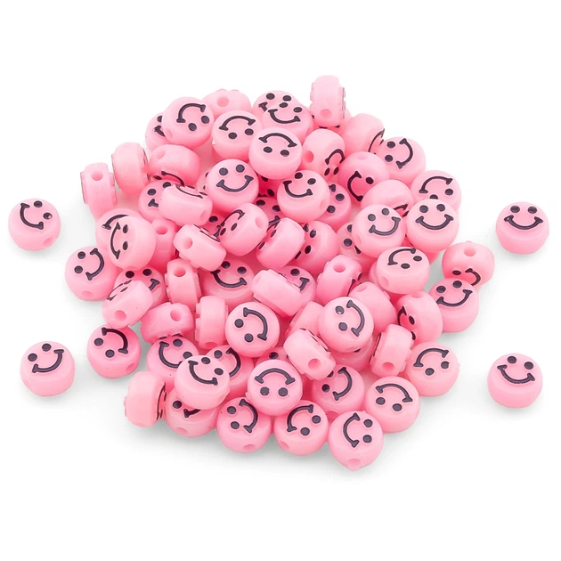 Намистини пластикові Смайлик круглі 10х6 мм 25 г +-80 шт Рожевий (БП1006с10)