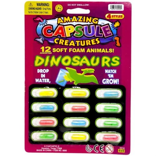 Зростаючі фігурки у капсулі PS-12/2 Динозаври, 12 капсул на планшетці