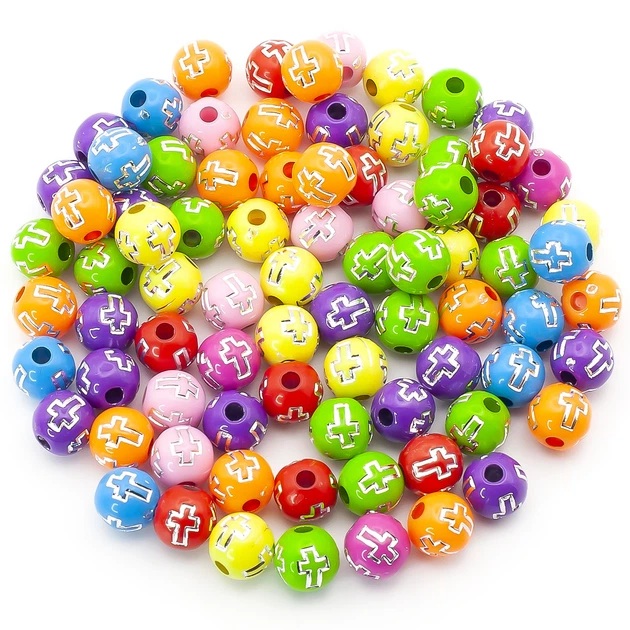 Намистини круглі Хрестик сріблястий 8 мм 25 г (+-90 шт.) Різні кольори (БП0008х52)