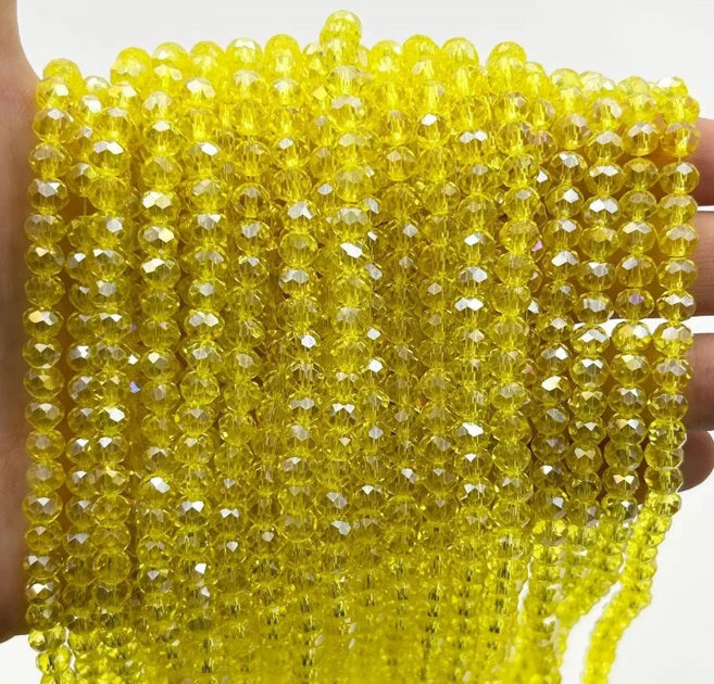 Намистини кришталеві Рондель 6х4 мм жовтий прозорий з АБ (уп.90 шт)