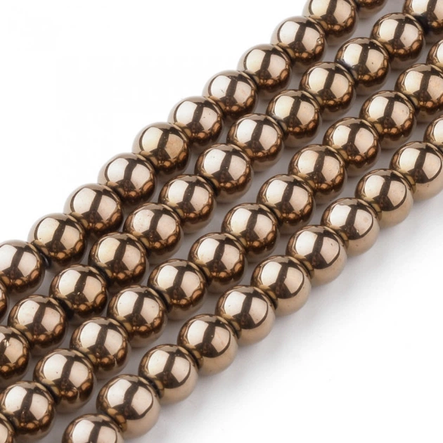 Намистини Гальваніка Скло, Круглі, Колір Мідний, 8мм, Отвір 1мм, близько 40шт/34см/нитка