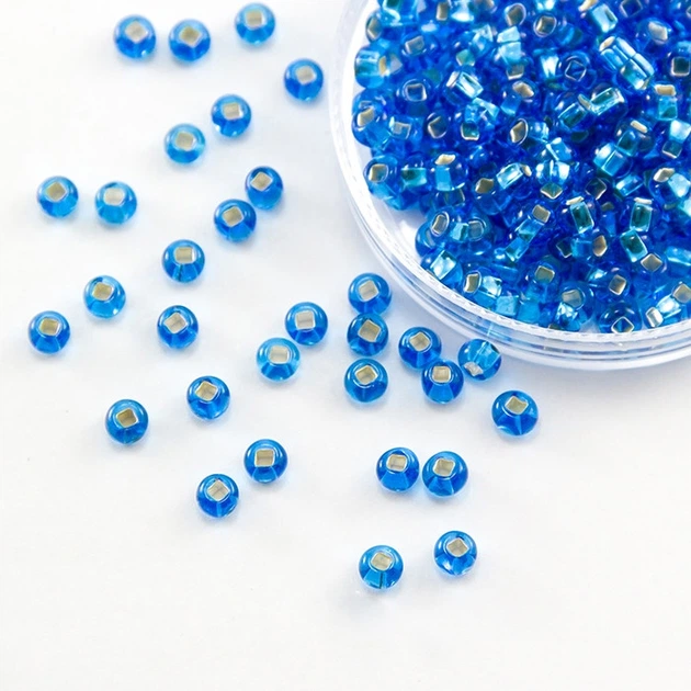 Бісер 67030 Чеський Preciosa 10/0, Прозорий зі срібною смугою TSL, Синій, Круглий, 50 г