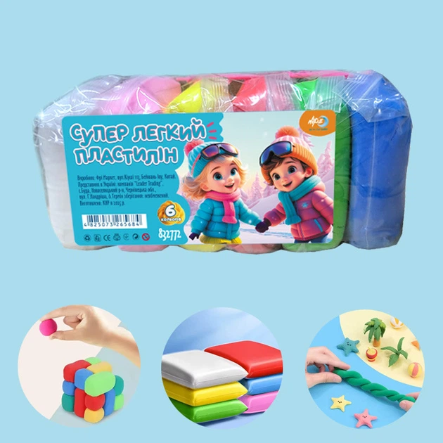 Пластилін суперлегкий Hipe 6 кольорів 200гр (832772)