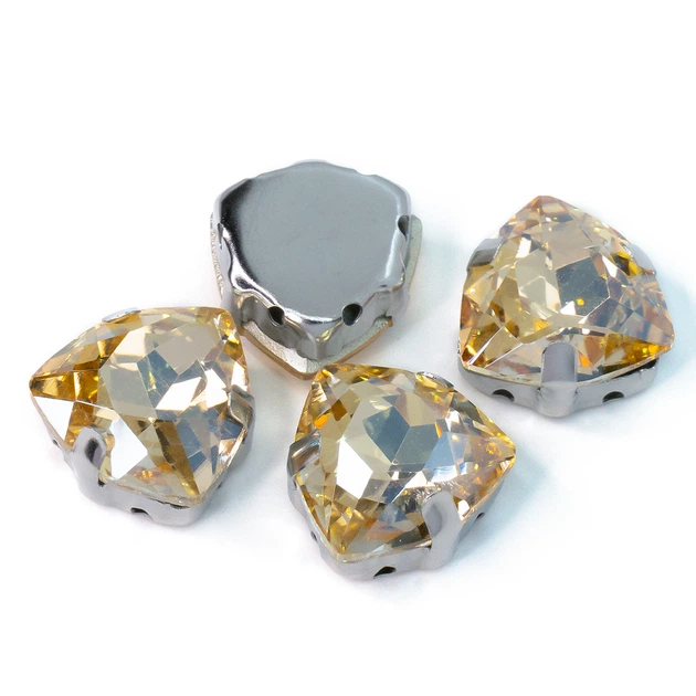 Стрази скло К9 в оправі Трикутник 12 мм 3 шт. Золотий фантом (СС0012е19)