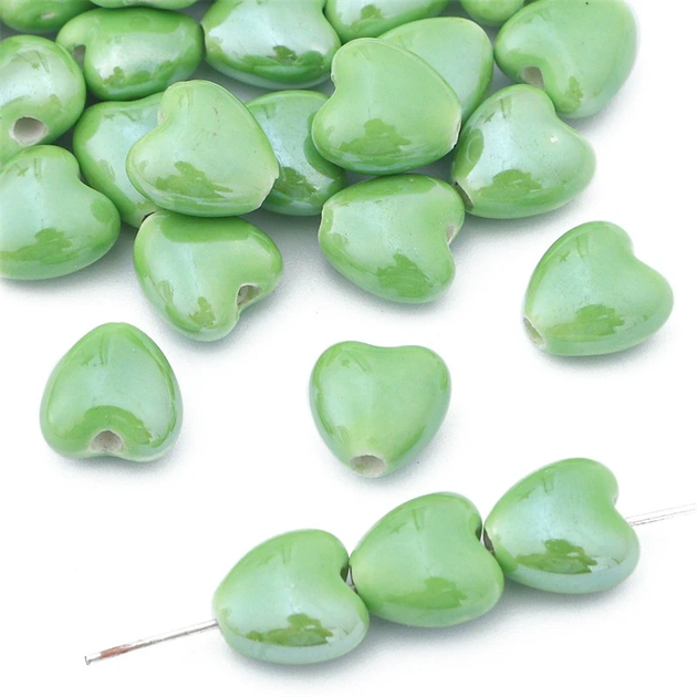 Намистини Серце керамічні вертик. отвір 12х12,5 мм 5 шт. Салатовий (КБ1212с11)